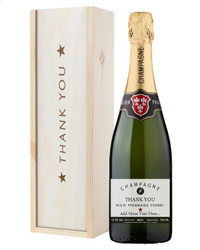 Express your thanks with a personalised Champagne Thank You gift. This single bottle of Paul Langier Brut is the ultimate way to express your gratitude. The label can be personalised with your own text. The bottle is then presented in our classic solid wooden box with the words ‘Thank You’ printed on the lid. A longer message can also be created during checkout, this will get inserted with the bottle. And if you want to go the extra mile an option to add a Thank You Helium balloon will be offered when checking out.