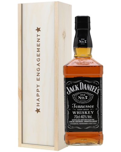 Surprise the newly engaged couple with this delicious and classic Whiskey gift. Bring a bit of Tennessee into the celebrations by sending them a single bottle of the famous Jack Daniels Old No. 7 Tennessee Sour Mash Whiskey. Perfectly distilled and presented, this gift comes in one of our traditional and beautiful wooden gift boxes with ‘Happy Engagement’ printed on the lid. You can also add your own message for the happy couple so you can share the celebrations with them. Next day or selected date delivery is available anywhere in the UK, meaning even if you can’t be there in person, you can still celebrate the joyous occasion with the newly engaged couple.