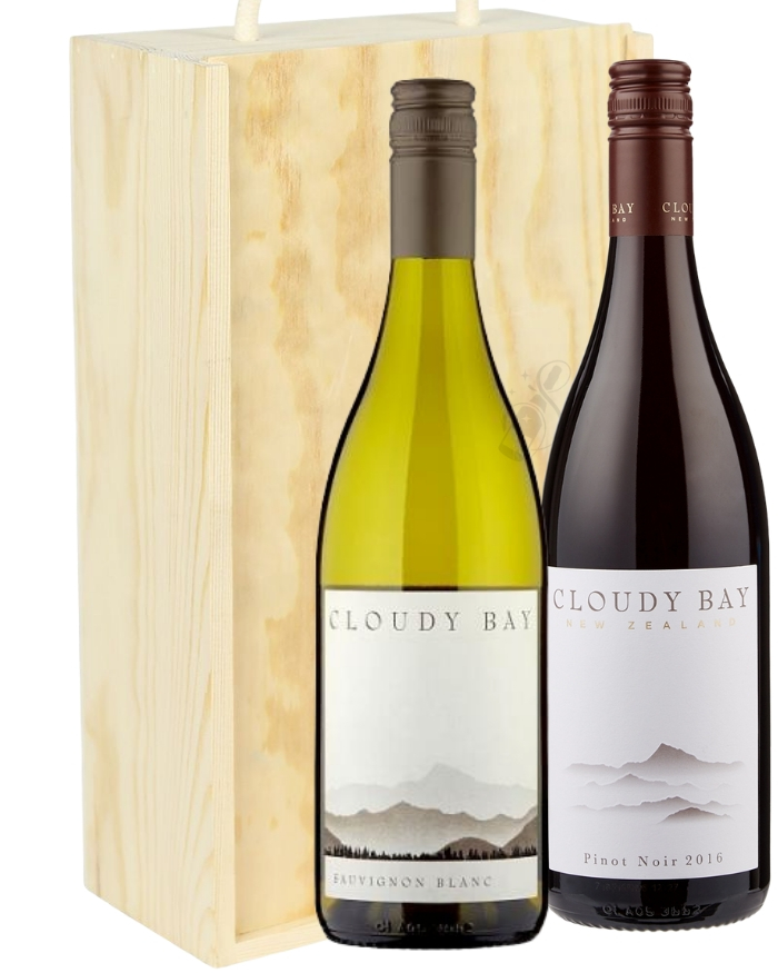 Cloudy Bay Sauvignon Blanc And Pinot Noir Two Bottle Wine Gift in Wooden Box