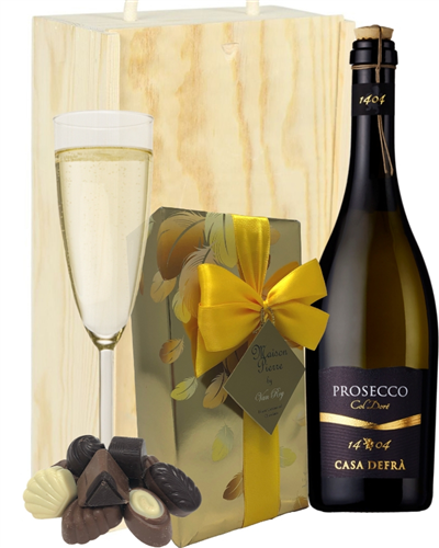 Prosecco & Chocolates Gift In Wooden Box (Frizzante)